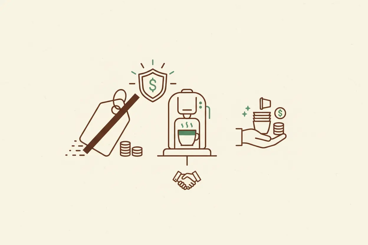Con una macchina in comodato d'uso, risparmi fino a €200 di costo iniziale, pagando solo il caffè che consumi.